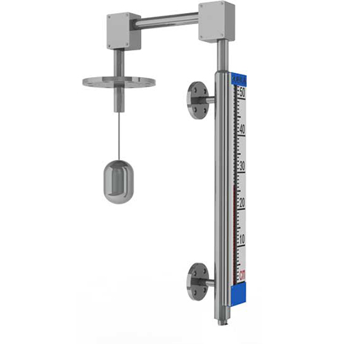 在液位計管體的另一側可按用戶需要加裝電遠傳變送器,將液位高度轉換成標準電流信號輸出,以供液位信號輸出,以供液位信號遠傳至二次儀表進行指示控制與檢測。