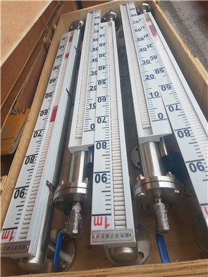 l、側(cè)裝式液位計與被測容器的上下分液管間*好各裝一只截止閥門以便打開或關閉液位計;另一方面為維修液位計帶來方便。在上下截止閥關閉時可打開液位計底部排污法蘭或卸下排污螺釘,注入清水即可清洗液位計的主體。