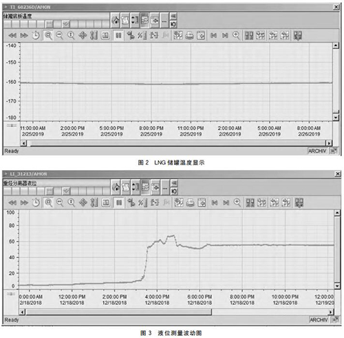 然后利用多孔法蘭(結合LNG項目的實際情況來選擇法蘭的孔數以及尺寸大小),將其接到LNG罐頂的溫度變送器接線箱內部,再使用多芯電纜把4~20mA信號發送到控制系統。現場安裝RTD熱電阻建議選用雙支,方便以后檢修更換。圖2為LNG儲罐溫度顯示。