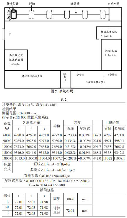 在本率定系統中,采用磁致伸縮式高精度二甲苯液位計,精度為±0.01mm。采用高低溫交變濕熱試驗箱進行溫度傳感器率定。數據采集系統為美國坎貝爾 CR1000 自動數據采集系統,通過控制電腦,將設定好的頻率裝載入采集系統,自動加水和放水以及數據采集,同時數據自動保存和計算。