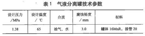 某煉化裝置1臺立式氣液分離罐(規格DN2400X20,以下簡稱分離罐),技術參數見表1。在今年12月運行中液位計接管(425x3mm)的外伸部位發生泄漏,進行停工搶修。