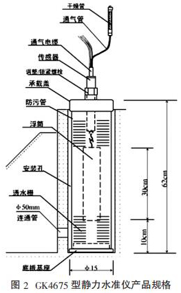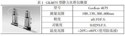 GeoKon 4675 型靜力水準儀是一種高精密液位系統,該系統設計是 用于測量多點相對沉降的系統。在使用中,一系列的傳感器容器均采用PVC 液管聯接,每一容器的液位由一精密振弦式力傳感器測出,該傳感 器內有一個自由懸重,一旦液位發生變化,懸重的懸應浮力即被傳感器感,精確測出小至 0.025mm 的垂直變化。在多點系統中,所有傳感器的垂 直位移均是相對于其中的一點,該點的垂直位移是相對恒定的或者可用其它人工觀測手段準來確定。