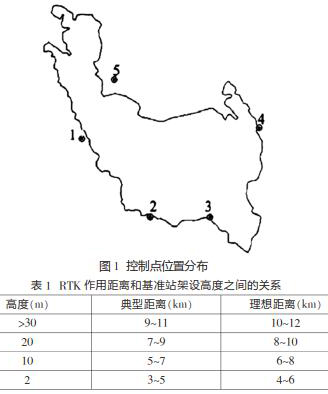 在該水庫工程當(dāng)中,測量人員采用的坐標(biāo)系統(tǒng)是1980西安坐標(biāo)系。在具體的測量過程之中,測量人員運(yùn)用2臺(tái)南方GPS儀器來收集相應(yīng)的測量數(shù)據(jù),并使用1臺(tái)徠卡全站儀、一臺(tái)GPS-RTK來完成相應(yīng)的數(shù)據(jù)采集工作。對水庫進(jìn)行勘測定界的主要目的是針對淹沒線作用的土地范圍,對界樁實(shí)施測量與放樣,結(jié)合設(shè)計(jì)水位的高程,做好界樁拔放工作。因?yàn)樵摰貐^(qū)的地形比較陡峭,故測量人員決定采用雙基站方法開展測量工作。該地區(qū)共有5個(gè)控制點(diǎn),具體的位置分布見圖1。另外,因?yàn)镽TK數(shù)據(jù)鏈?zhǔn)褂贸哳l電磁波,數(shù)據(jù)鏈所發(fā)生的電磁波頻率比較高,能夠得到456MHz,為了保證測量數(shù)據(jù)更為精確,測量人員可以將基準(zhǔn)站設(shè)置在測區(qū)的zui高位置,并結(jié)合RTK作用距離和基準(zhǔn)站架設(shè)高度之間的關(guān)系,合理控制基準(zhǔn)站的架設(shè)高度,RTK作用距離和基準(zhǔn)站架設(shè)高度之間的關(guān)系見表1。