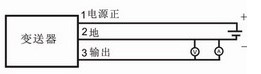 2、三線制0~5V,0.5~4.5V,0~10V,0~10mA,0~20mA等輸出變送器電氣連接圖: