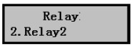 6)設置好繼電器1參數后點Mode鍵退回Relay繼電器設置菜單,按擊▼鍵選擇需要設置的其他繼電器:例如右圖,表示設置繼電器2。按擊OK鍵進入設置,方法同上。