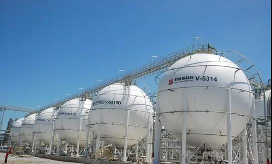 球罐,抗壓性好,與圓筒容器(即一般立式貯罐)相比,在直徑和壓力相同的情況下,罐壁厚度僅為圓筒容器的一半,鋼材用量省;量程大,且占地較小,基礎工程簡單,性價比高,為*常用儲罐之一。