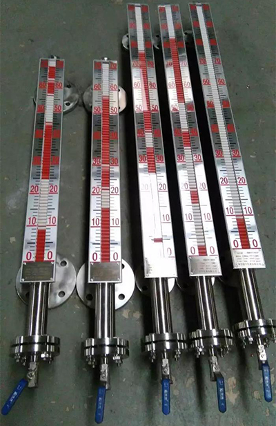 根據(jù)浮力原理,浮子在測量管內(nèi)隨液位的升降而上、下移動,浮子內(nèi)的永久磁鋼通過耦合作用,驅(qū)動紅、白色翻柱翻轉(zhuǎn)180°,液位上升時翻柱由白色轉(zhuǎn)為紅色,下降時由紅色轉(zhuǎn)為白色,從而實現(xiàn)液位指示。